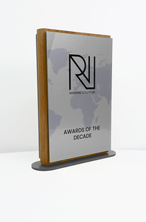 Atom Award Large - Silver Acrylic affixed to a wooden Beech award - Digital print to 1 side.