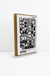 Atom Award Medium - White Acrylic affixed to a wooden Beech award - Digital print to 1 side.