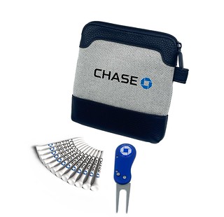 Flix Lite Caddi Elite Bag in cream and black with zip, printed up to full colour to 1 side, packed loose with 12 white 70mm tees printed up to 3 colours on the shank & 1 x Flix Lite repair tool with 25mm Black Nickel removable resin dome ball marker which is printed up to full colour. Fabric is cotton mixed linen and PU leather trim to the bottom. Upgrade to include a 47mm black carabiner for an additional cost