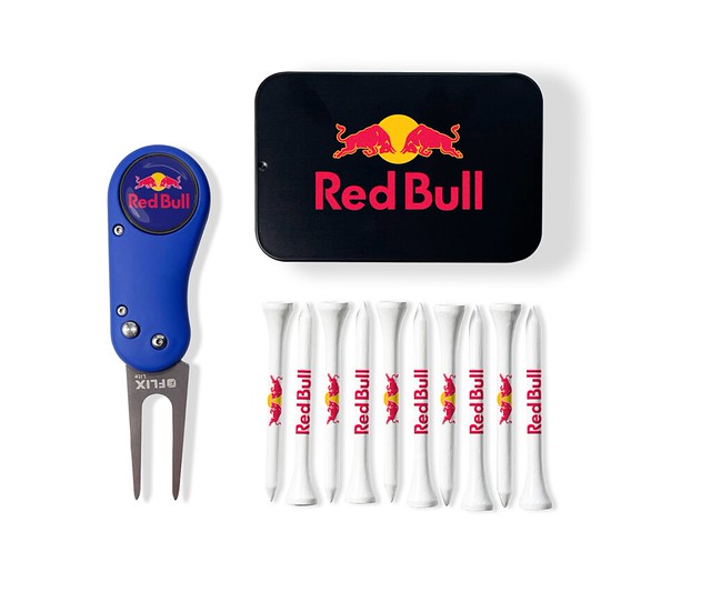 Flix Lite Tin packed loose with 10 white 70mm tees printed up to 3 colours on the shank & 1 x Flix Lite repair tool with 25mm black nickel removable full colour resin dome ball marker. Tin is digitally printed on the lid, up to full colour