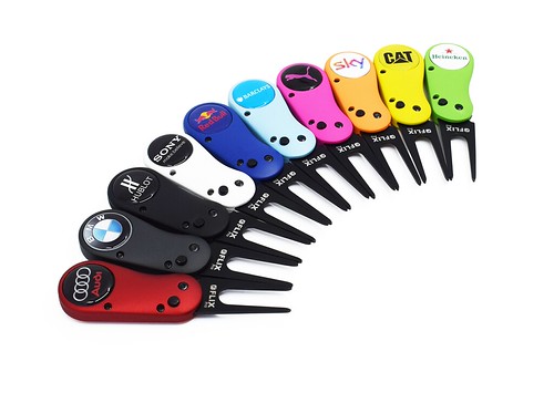 Flix Pro 2.0 auto opening metal repair tool with new removable shiny nickel 25mm faux enamel ball marker which is digitally printed up to full colour (our Ball Marker Pro). Bulk boxed. Upgrade to individual packaging in Black or White at an additional cost (Levit8 - code ADDLP)