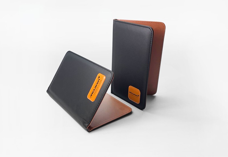 Scorecard Holder black with tan inner. Magnetic closure. Material is leatherette (PU). Includes up to full colour resin dome to the front (dome size either 51mm x 23mm or 35mm x 35mm, our studio will choose whichever best suits the logo provided). Individually bagged