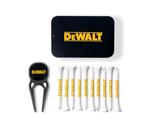 Quatro Repair Tool Tin packed loose with 10 white 70mm tees printed up to 3 colours on the shank & 1 x Quatro repair tool with full colour resin dome removable gunmetal 26mm square ball marker. Tin is digitally printed on the lid, up to full colour